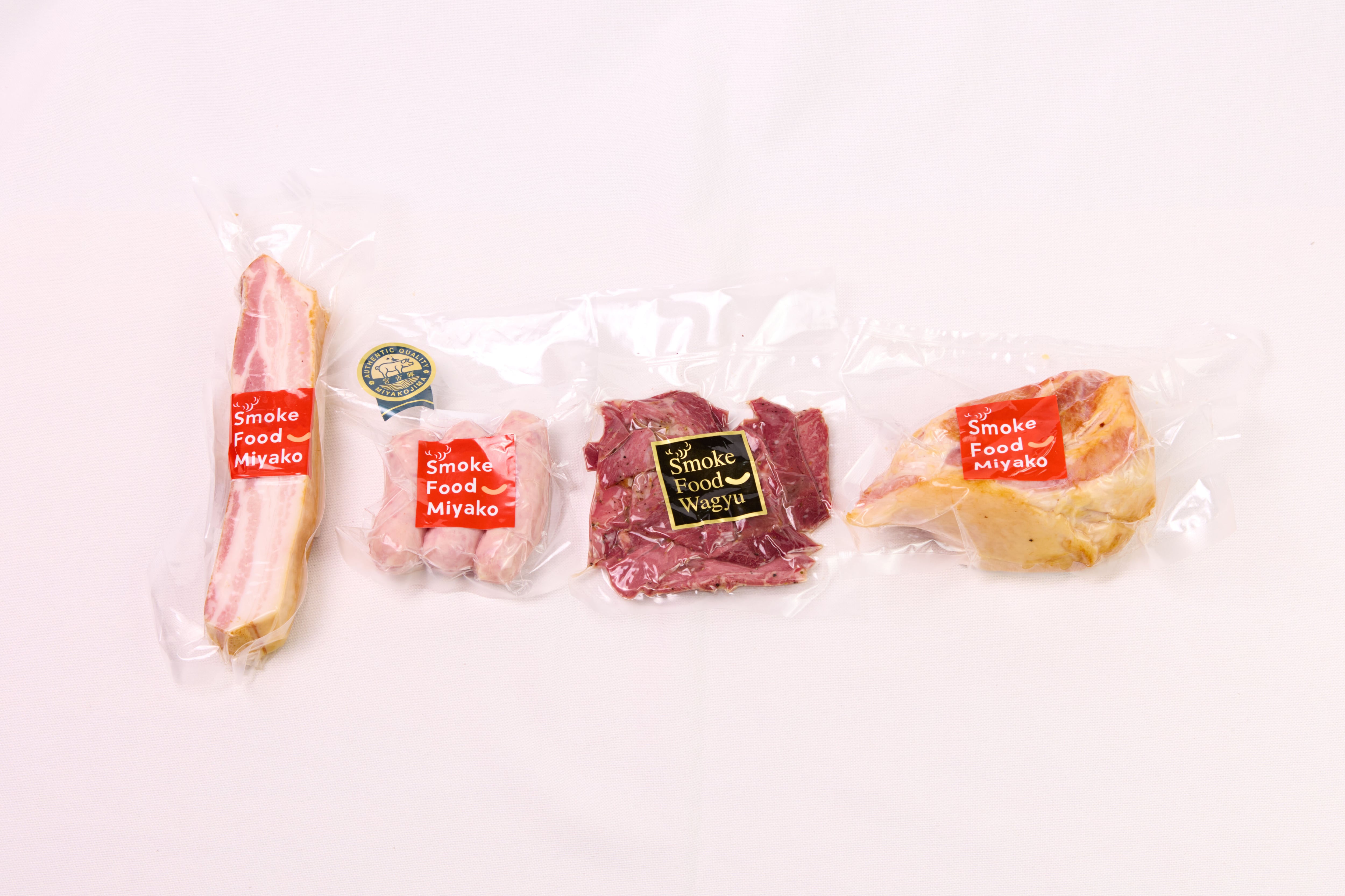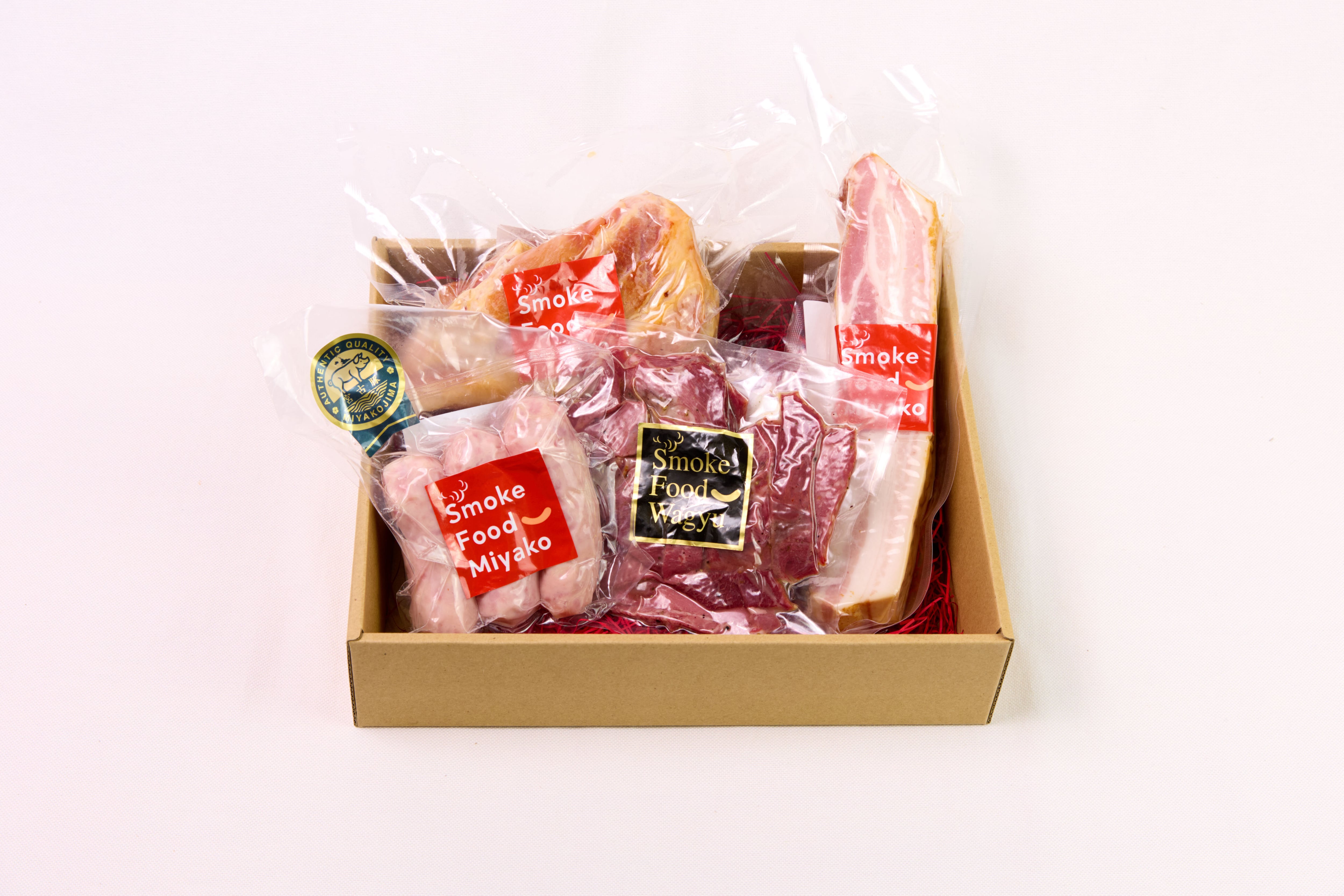 リゾートホテルの朝食の定番「島豚吊るしベーコン」をはじめ、厳選された素材から作られた贅沢なベーコンとおつまみ牛スモークのセットです。くんちゃまーを使用したベーコンは、バラ肉と肩ロースの違いが楽しめ、ジューシーで濃厚な味わいが特徴。宮古牛やもとぶ牛を原料とした牛スモークは、あけた瞬間に手軽に楽しめ、パーティーやおもてなしにぴったりです!